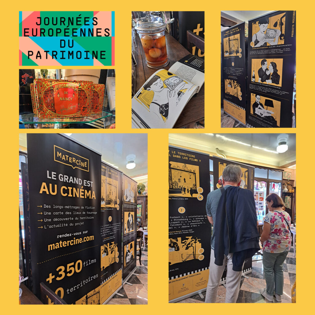 Materciné y expose quelques panneaux d’exposition qui mettent en avant le placement de ce produit régional au cinéma dans le film Le fabuleux destin d’Amélie Poulain. La boîte de Bergamottes de Nancy est à la fois symbolique de l’enfance du réalisateur Jean-Pierre Jeunet et du patrimoine culturel nancéien.