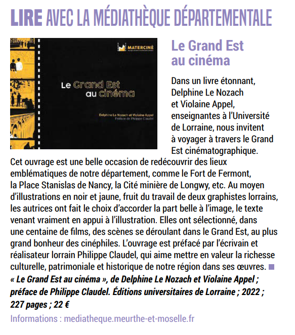 [Médias] Focus sur l’ouvrage « Le Grand Est au cinéma »