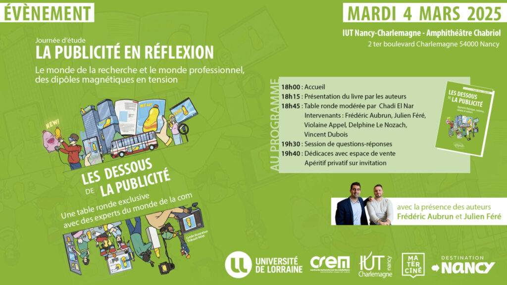 Materciné organise la journée d’étude « La publicité en réflexion : Le monde de la recherche et le monde professionnel, des dipôles magnétiques en tension » (Université de Lorraine / Crem / IUT Nancy-Charlemagne).