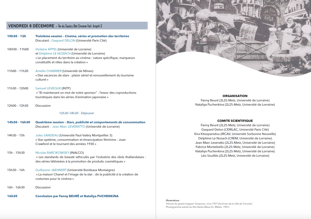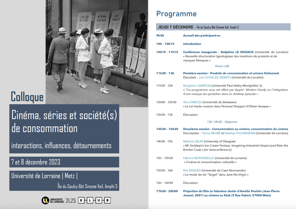 Colloque « Cinéma, séries et société(s) de consommation : interactions, influences, détournements » – Metz, campus du Saulcy (Université de Lorraine) – 7 et 8 décembre 2023